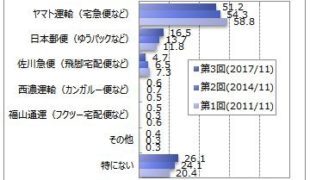 最も利用したい宅配便、「ヤマト運輸」が5ポイント減の51% -