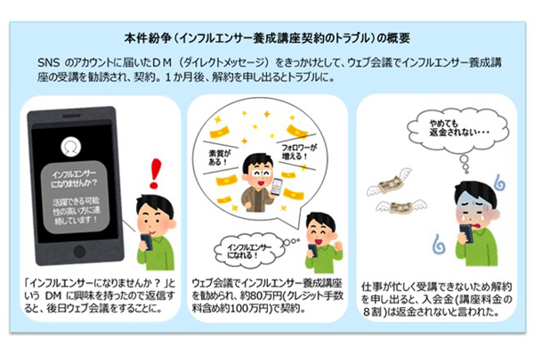インフルエンサー養成講座で高額請求 消費者トラブルが多... -