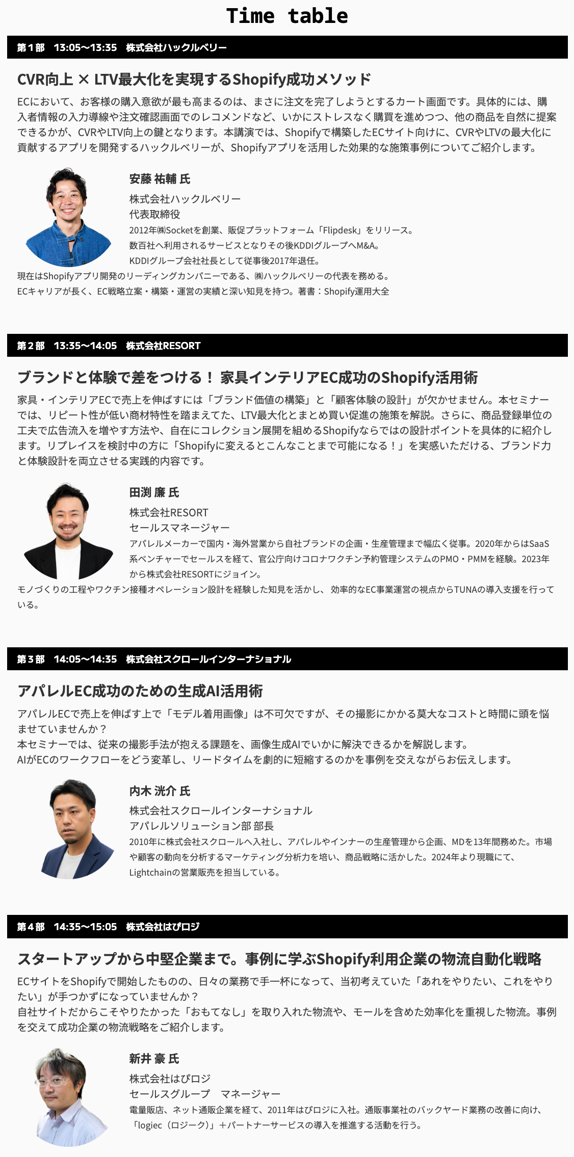 本セミナーでは、その好循環を生み出すための具体的な手法を、各分野のプロが成功事例を交えて徹底解説。日々の出荷・在庫管理を効率化する「物流自動化」の戦略から、Shopifyアプリを駆使した「CVR・LTV改善」のメソッド、さらにはブランド価値を高める「顧客体験の設計」まで、明日から使える実践的なノウハウをお届けします。