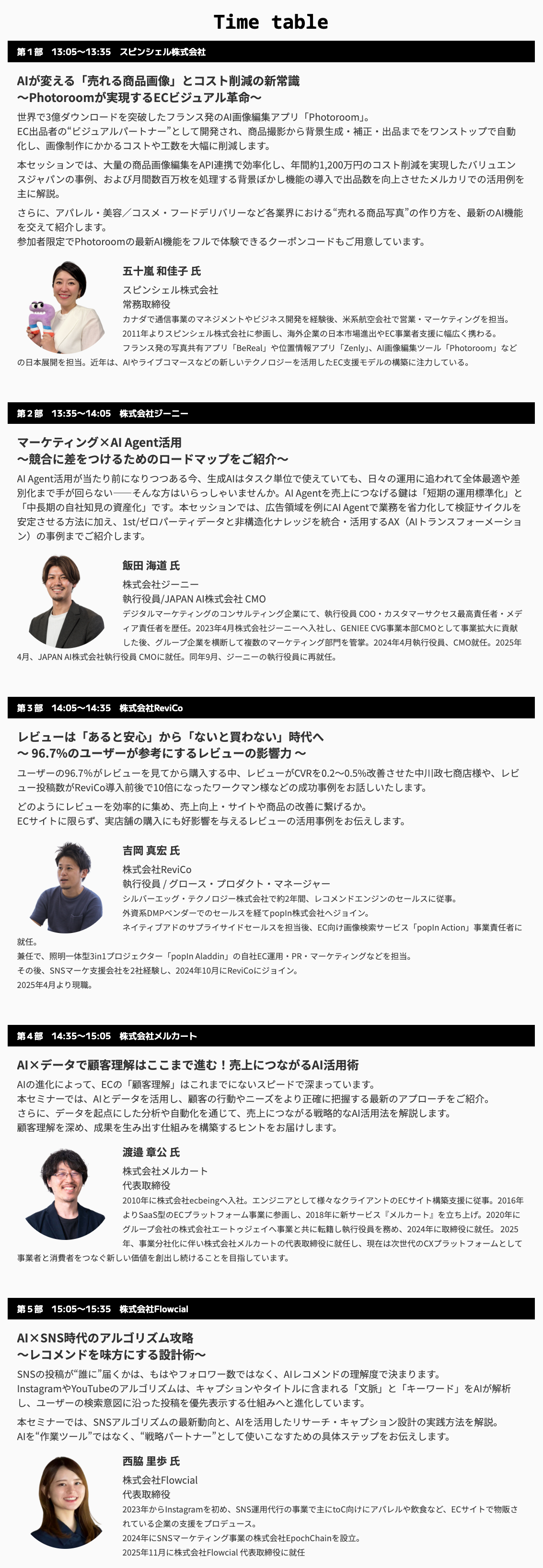 | イベント名 | もはや「AIに任せる」が新常識。 〜画像生成・顧客分析・レビュー活用まで、EC成長の最新AI戦略〜 |