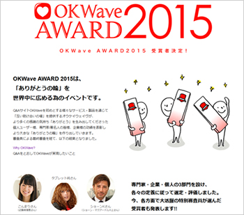 同アワードはQ&Aサイト「OKWave」での「回答」投稿を通じ、質問者の悩みや疑問の解決を手助けした回答者(一般・専門家・企業)を表彰するもの。