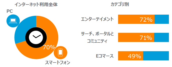 ECサイトの利用時間、「PC」51%・「スマホ」49%