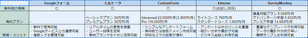 無料でシンプルなフォームが作成でき、URLでの共有も簡単ですので、気軽にアンケートを実施したいという方にはおすすめです。