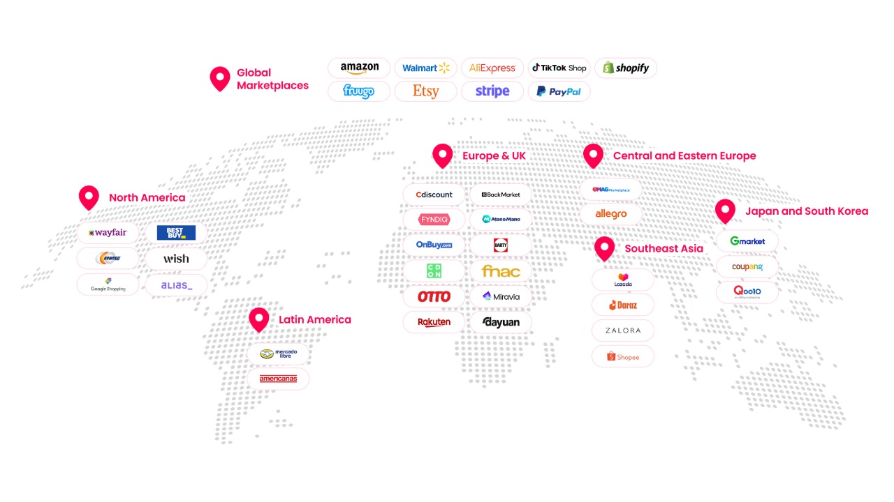この口座が真価を発揮するのが、EC事業者にとって主戦場となるマーケットプレイスとPSPとの連携である。AmazonやShopify、PayPalなど130以上の主要なプラットフォームと公式に連携しており、各チャネルからの売上金を、まるで現地の銀行口座のようにスムーズに受け取ることができる。