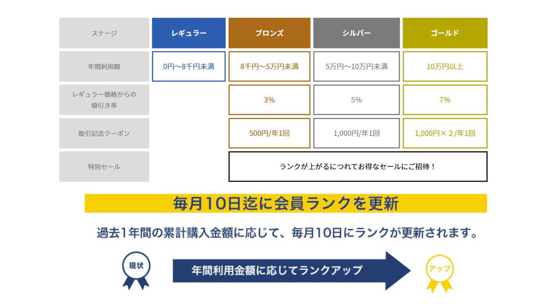 新ショップ「KEY'S TABLE」の最大の特徴は、卸先企業のロイヤリティを高める充実した会員制度だ 。無料の会員登録をするだけで、会員限定価格(卸価格)で商品を購入できる 。さらに、購入金額に応じて会員ランクがレギュラー、ブロンズ、シルバー、ゴールドとアップする仕組みを導入した 。ランクに応じてレギュラー価格からの値引き率が最大7%まで上昇するほか、取引記念クーポンのプレゼントなどの特典が用意されている 。これにより、既存・新規顧客を問わずロイヤリティを高め、継続利用率の向上につなげる施策として機能している